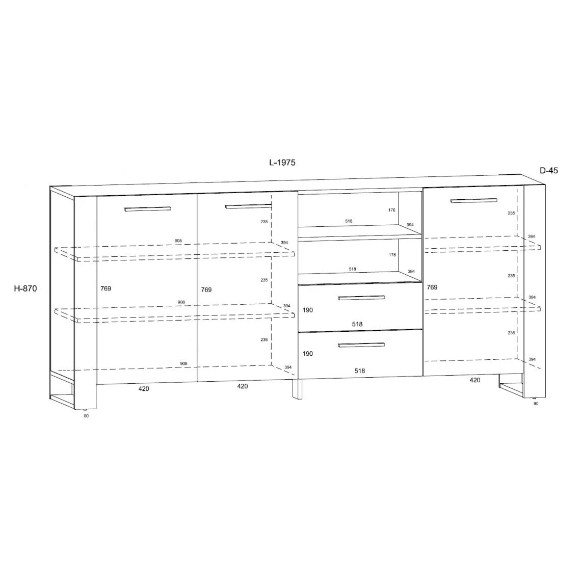 Dimensions : Hauteur : 87 cm, largeur : 197 cm. Profondeur : 45 cm.