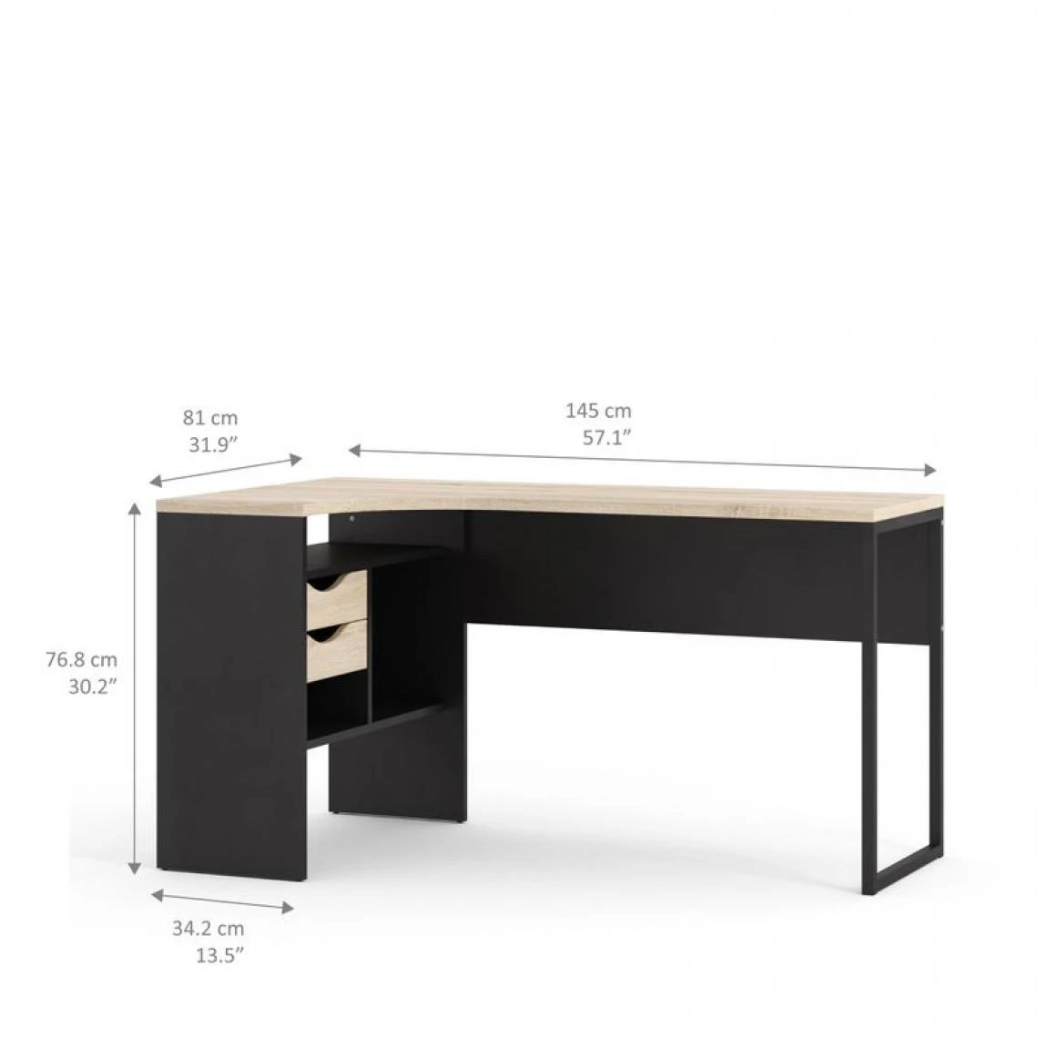 Avec ses nombreux espaces de rangement et son plateau en L, ce bureau d’angle 145,1 x 76,8 x 81 cm est doublement pratique. Non seulement il met à votre disposition une vaste surface de travail mais il vous offre aussi suffisamment de tiroirs et de niches pour assurer l’ordonnance parfaite de vos affaires. Ce bureau d’angle noir et imitation chêne vous permet donc de gagner de la place à tous les égards ! De plus, associé à une structure en panneaux de particules, son piétement en aluminium en fait un bureau d’angle aussi solide que durable.