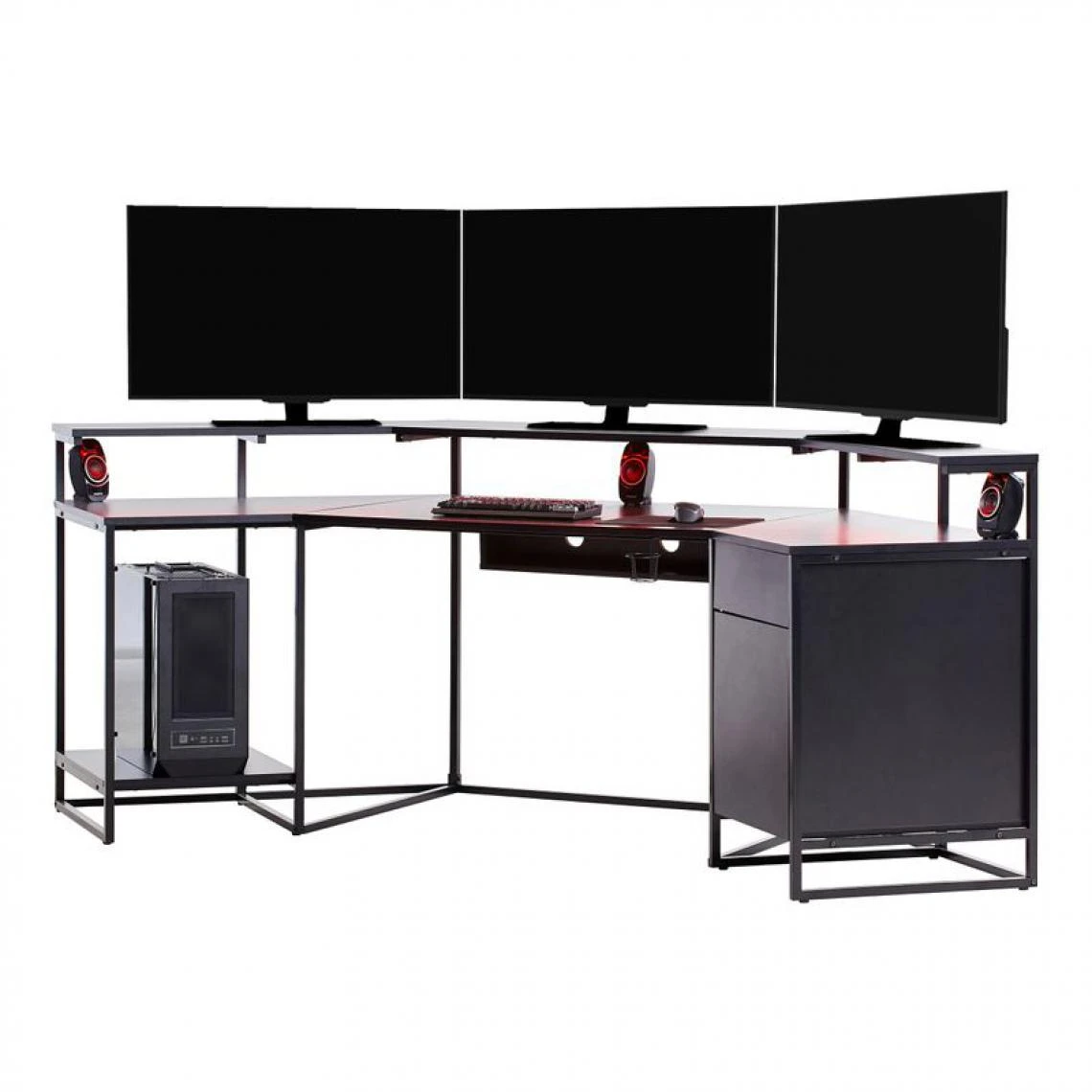 Vous rêviez d’un bureau idéal pour jouer : le bureau HARDCORE GAMER est fait pour vous !. Conçu pour accueillir 3 grands écrans et 1 tour, il dispose également d’un porte gobelet. On aime : son bandeau LED multicolors. Caisson réversible : droite ou gauche.