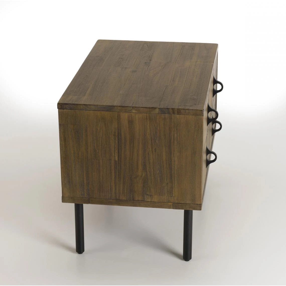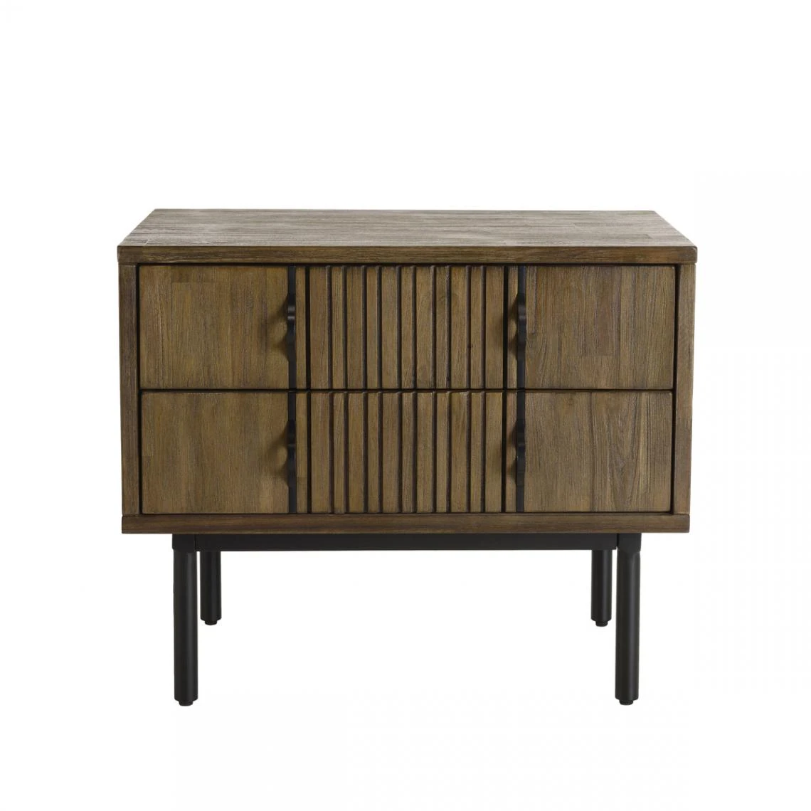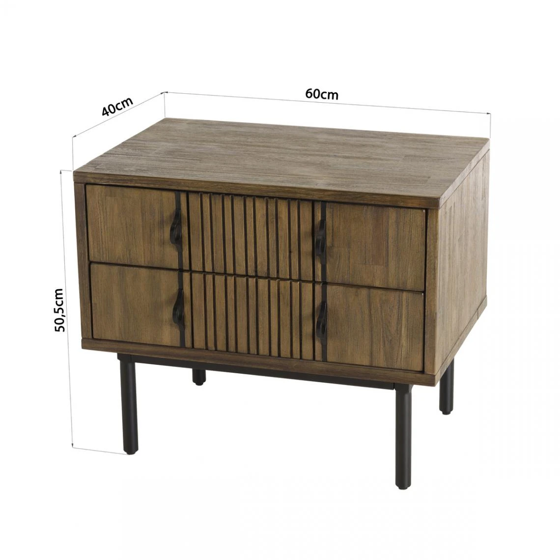 Points forts MACABANE Chevet 2 Tiroirs Acacia Pieds Métal GINO