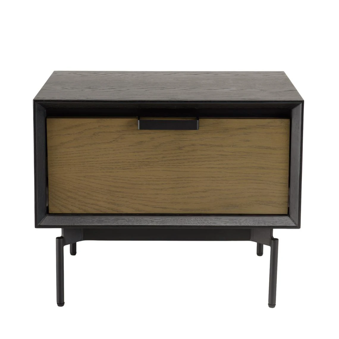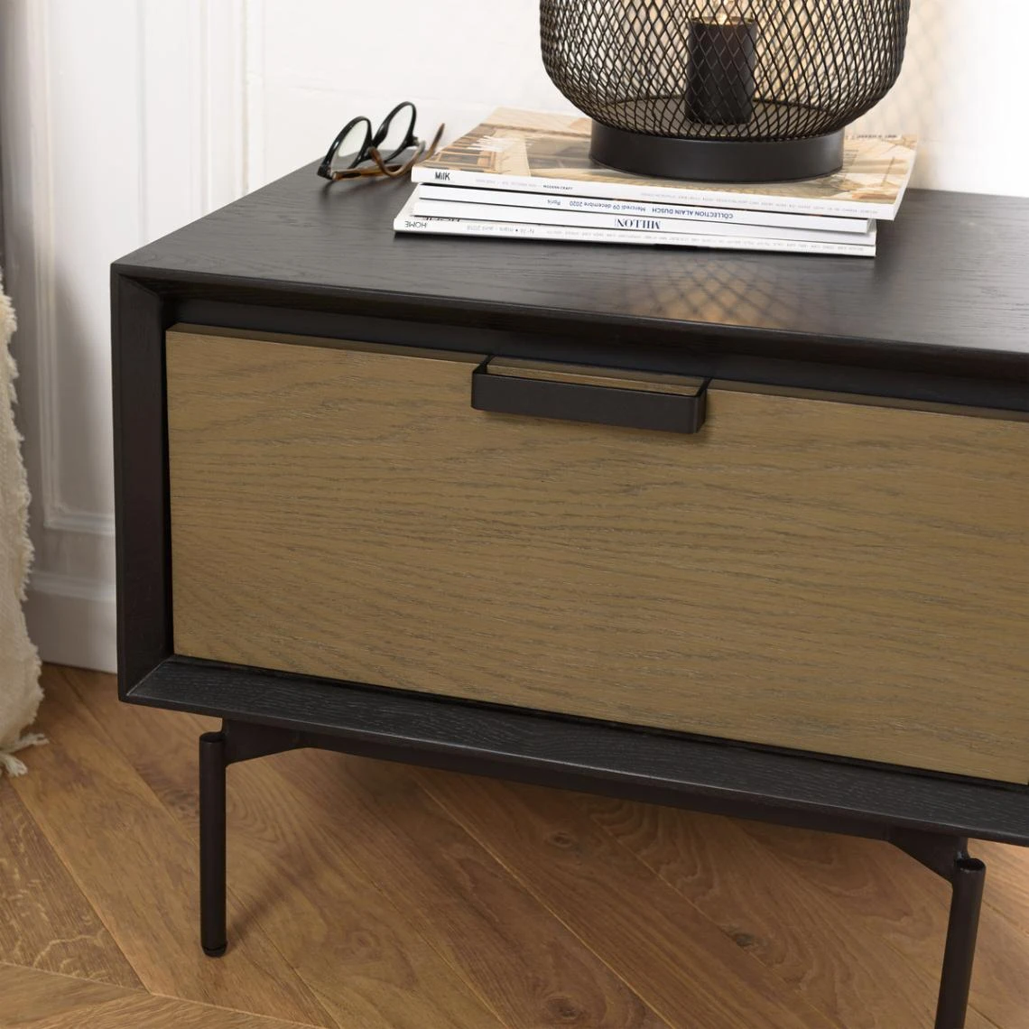 Points forts MACABANE Table de chevet noire 1 tiroir marron foncé pieds métal noir ALMA