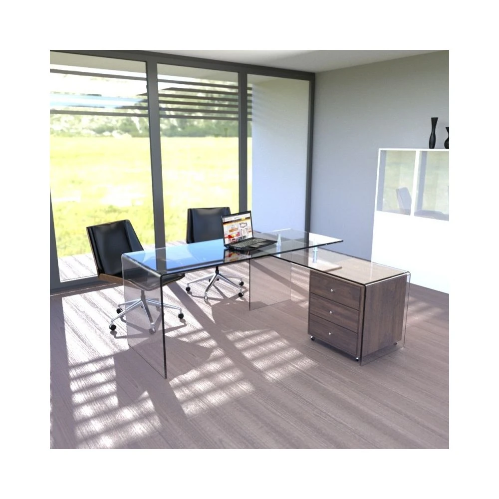 Points forts Meubler Design Bureau design en verre avec retour et caisson Ora