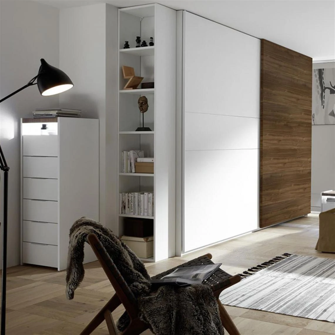 Points forts Nouvomeuble Chiffonnier LED blanc et couleur noyer foncé DELFINO