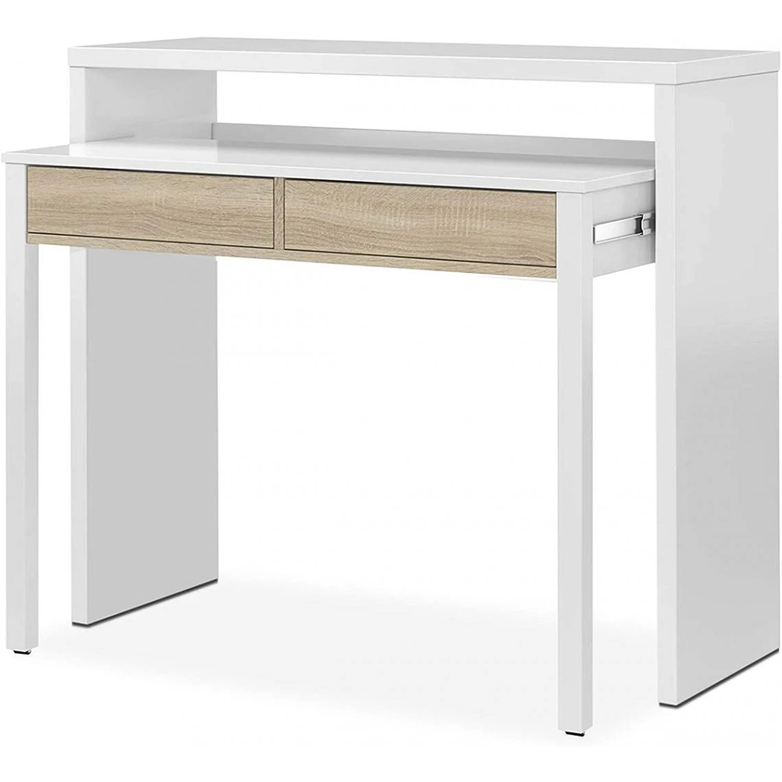 Points forts Pegane Table console extensible convertible en bureau coloris blanc et chêne – Hauteur 88 x longueur 99 x Profondeur 36-70 cm