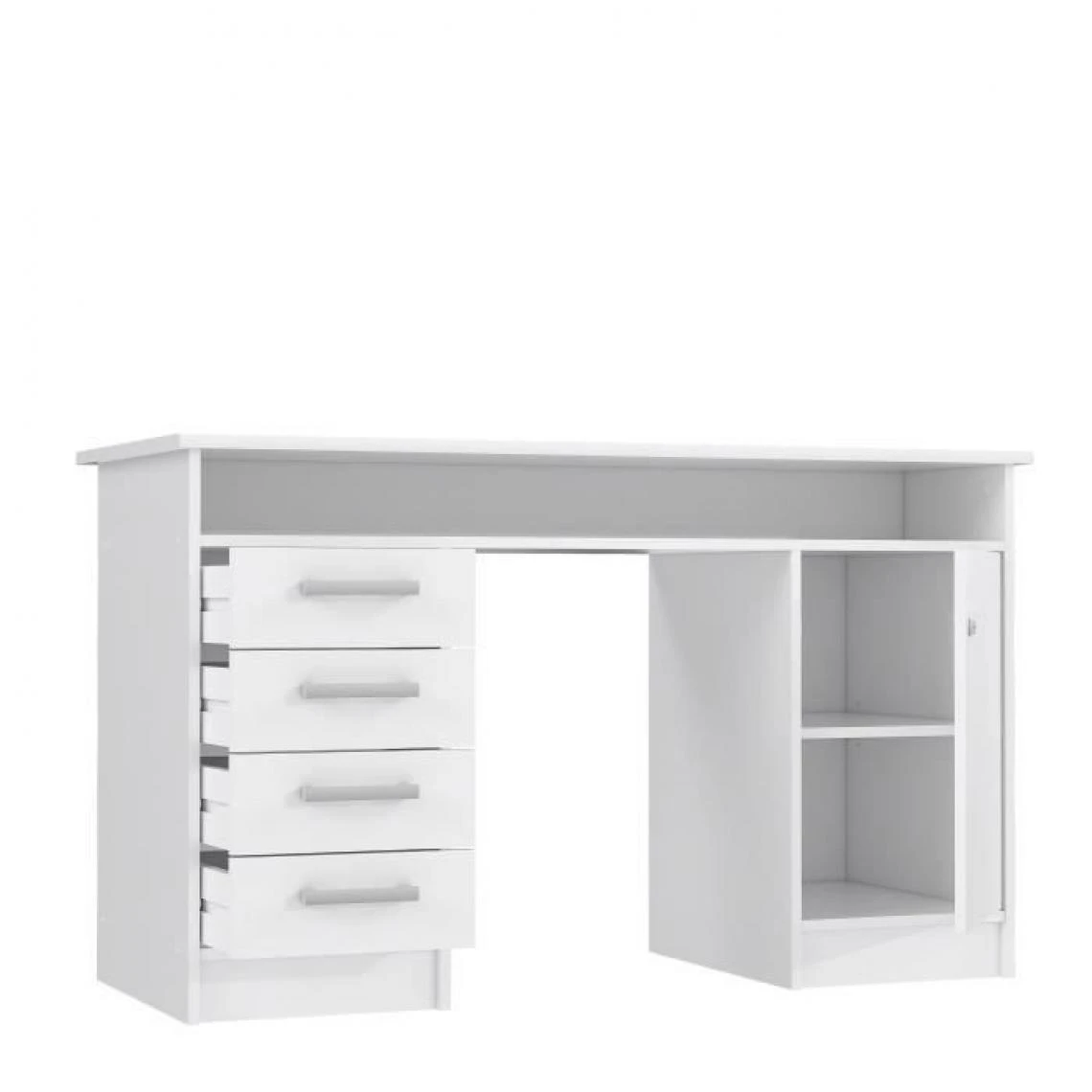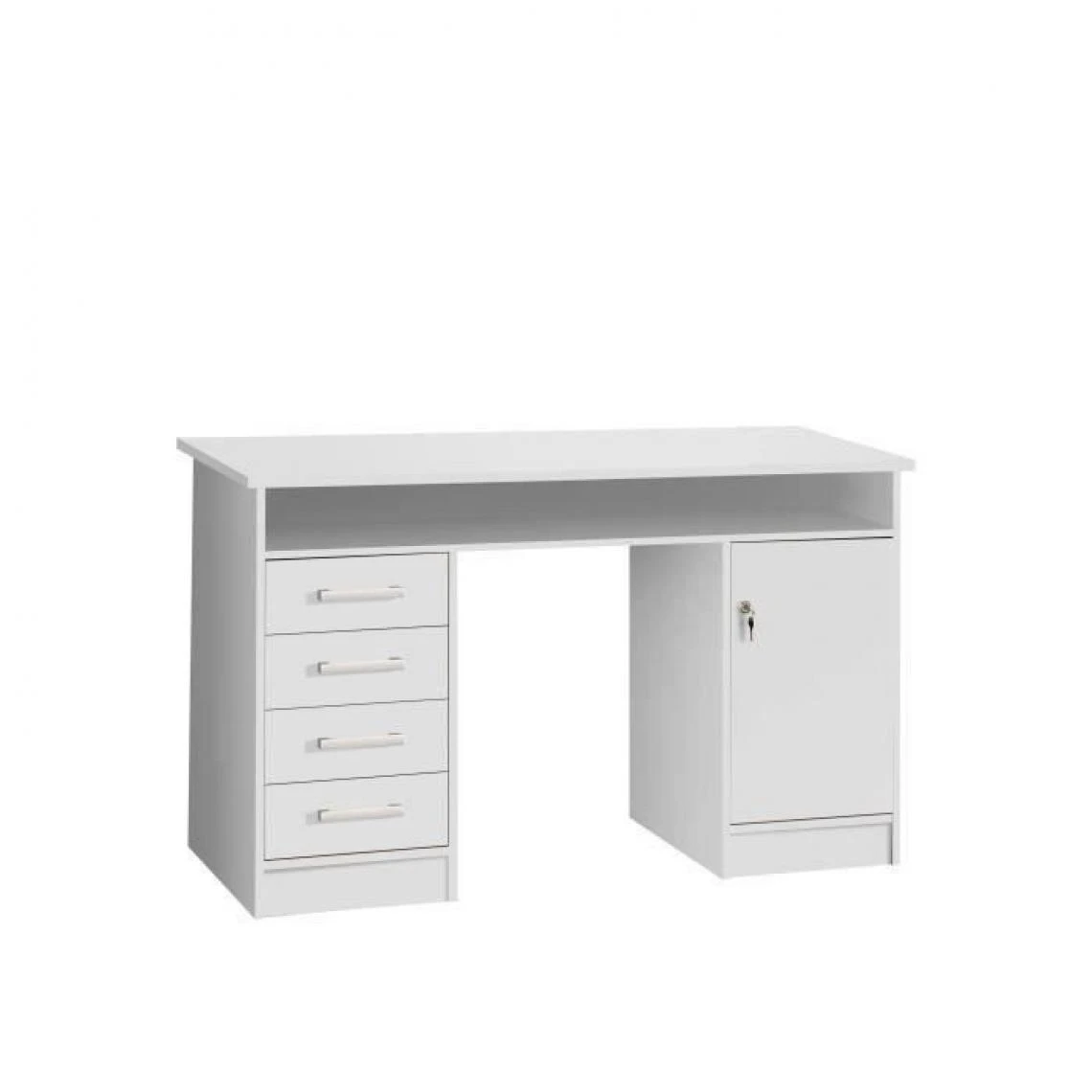 Points forts Sans Marque ALICANTE Bureau a cles, 1 porte, 4 tiroirs – Decor papier blanc – L 126 x P 55 x H 76 cm