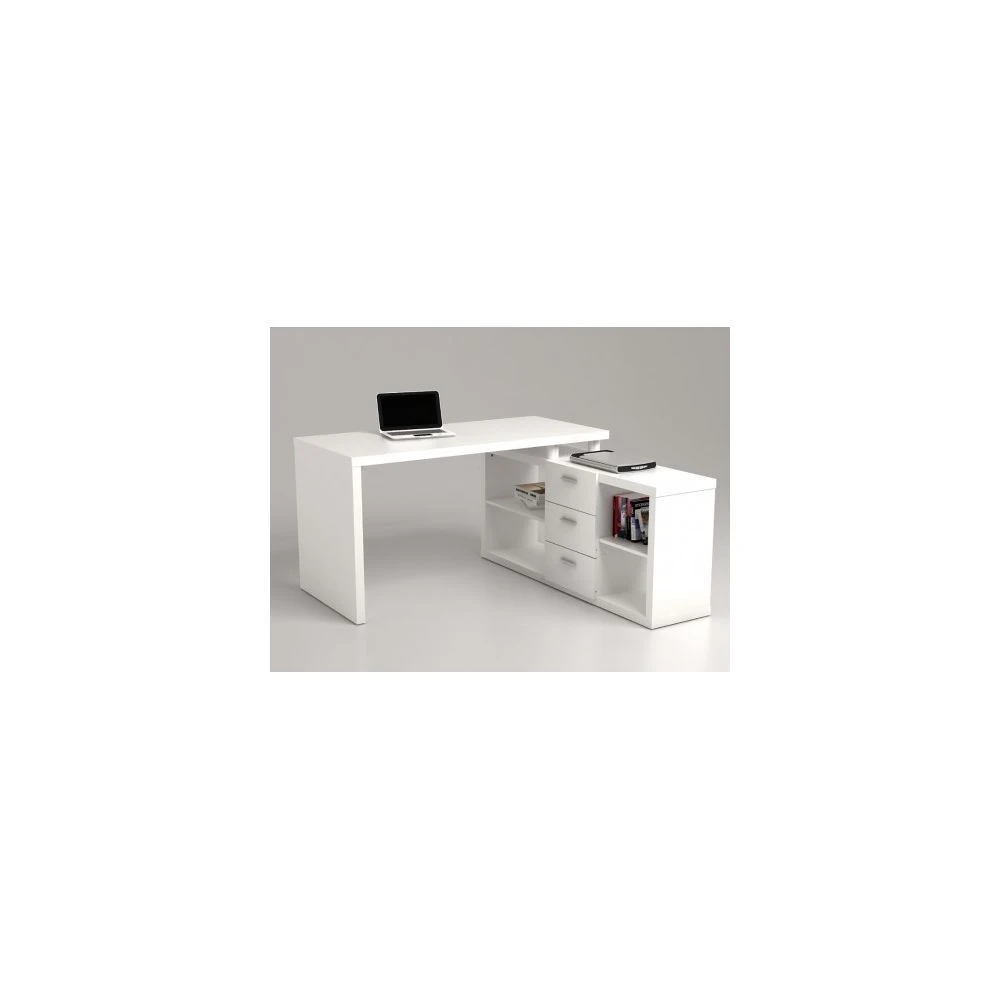 Points forts Vente-Unique Bureau d’angle avec rangements ALDRIC III – Blanc