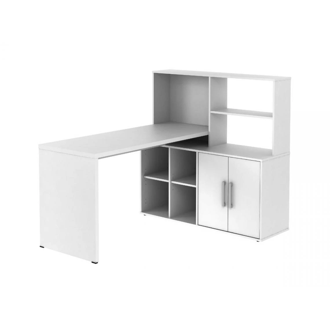 Points forts Vente-Unique Bureau d’angle LEON avec rangements et étagères – Blanc