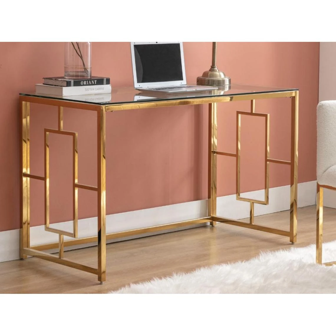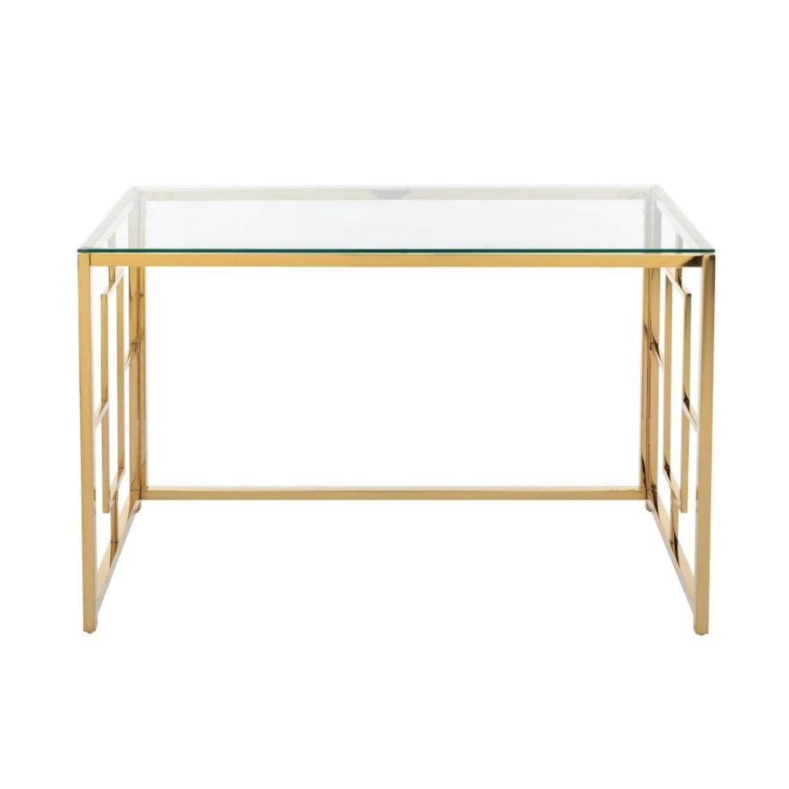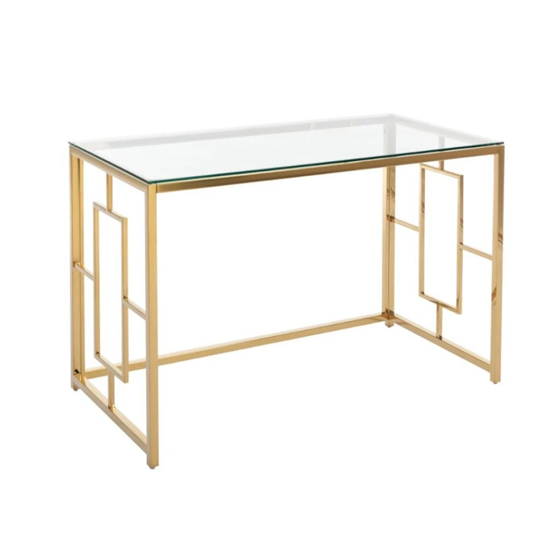 Points forts Vente-Unique Bureau en verre trempé et acier – Doré et transparent – CLOTILDE