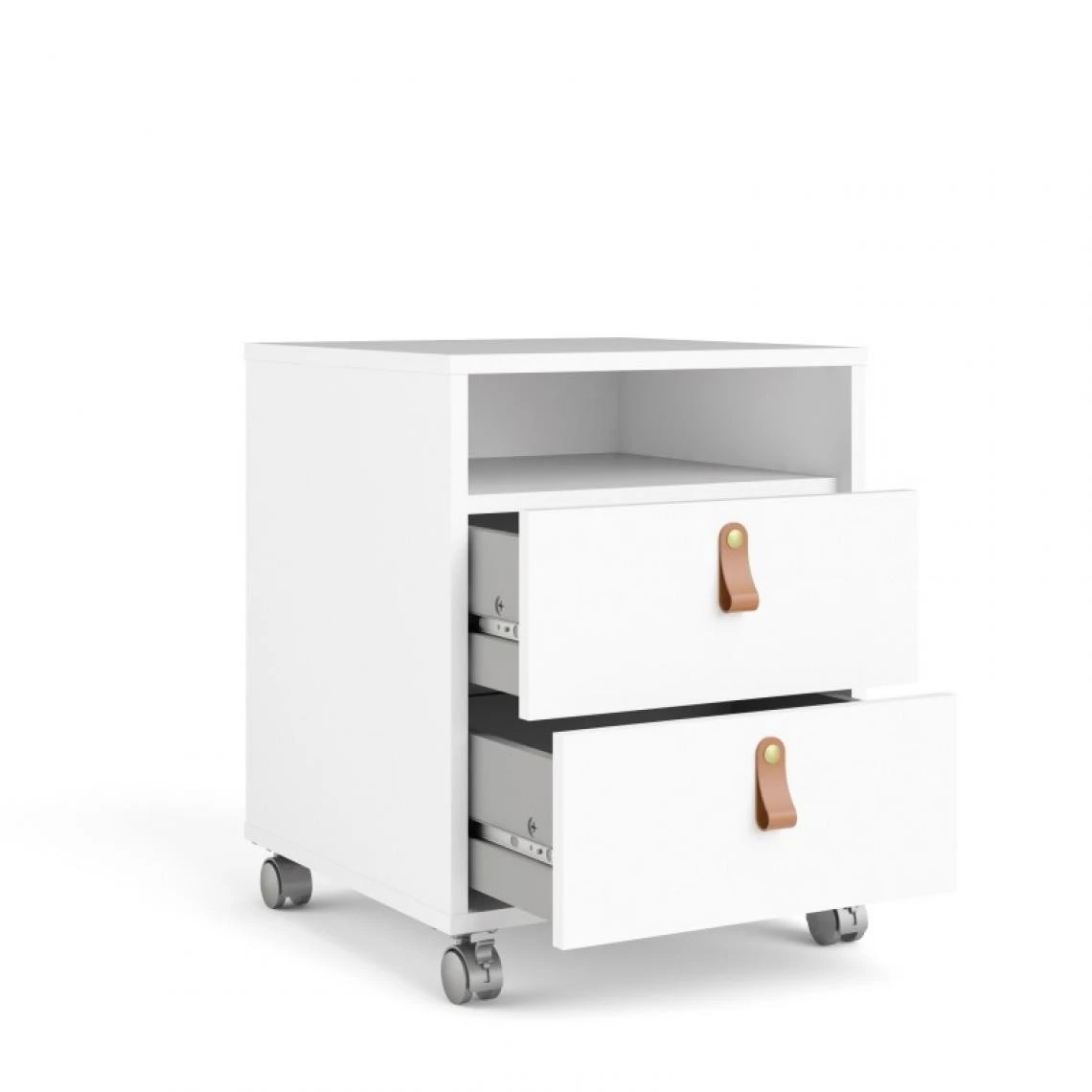 Caisson à tiroirs blanc avec roulettes et compartiment ouvert